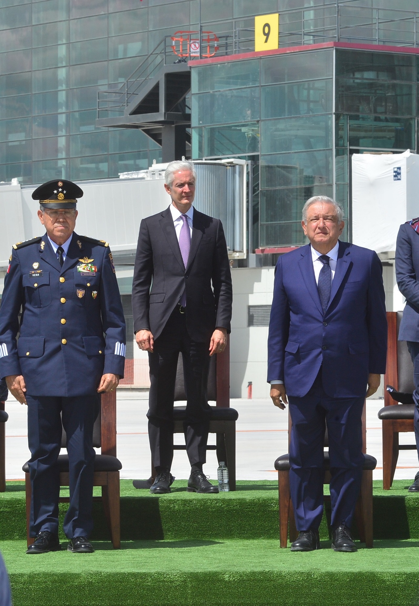 Las autoridades también recorrieron las instalaciones de la Terminal Aérea del Aeropuerto Internacional Felipe Ángeles, así como el pabellón C y la exposición estática de aeronaves de esta feria.
