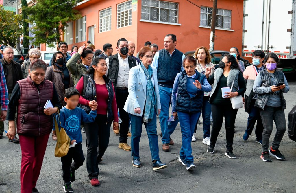 Naucalpan, Méx.- La presidenta municipal, Angélica Moya Marín realizó un recorrido en la colonia Lomas de San Agustín, considerada por los vecinos como “una zona de cuevas”, para conocer la problemática que enfrentan los colonos, a quienes propuso realizar un estudio para buscar una solución al hundimiento de calles.