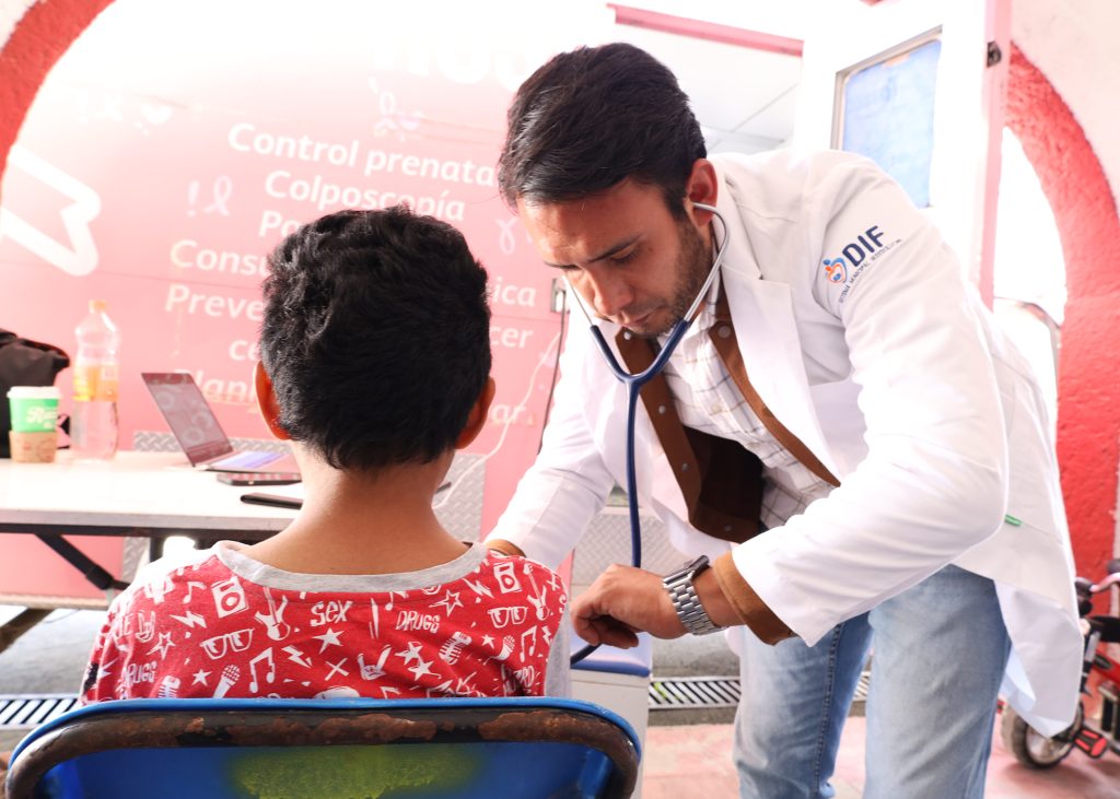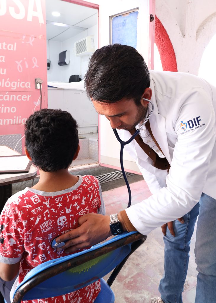• La presidenta municipal, Romina Contreras, indicó que personal médico del organismo brinda este servicio en las comunidades, para reducir gastos a los padres de familia, además de acercar servicios médicos a la población