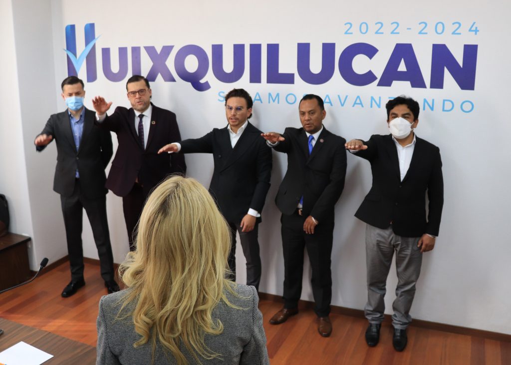 En este marco, la presidenta municipal, Romina Contreras, tomó protesta de ley a los ciudadanos Luis Guillermo Zetina Obregón, José Alfredo Carrillo Silva, Maximiliano González Solorio, Cuauhtémoc Rojas Archundia y José Alberto Flores Mora, con el propósito de que asuman las funciones que confiere la Ley del Sistema Anticorrupción del Estado de México.