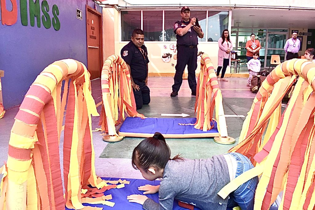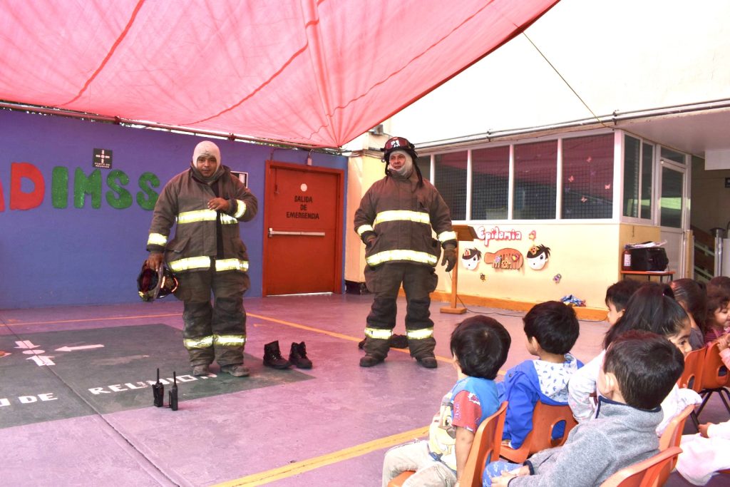 En apego a la cultura de Protección Civil, educadoras, personal del área de conservación, enfermeras y epidemiólogos de su clínica de apoyo y en ocasiones del Departamento de Bomberos municipales, inculcan conceptos básicos a niñas y niños desde 3 a 6 años de las salas de maternal y preescolar de las Guarderías del Esquema Ordinario del Instituto Mexicano del Seguro Social (IMSS) Estado de México Oriente.