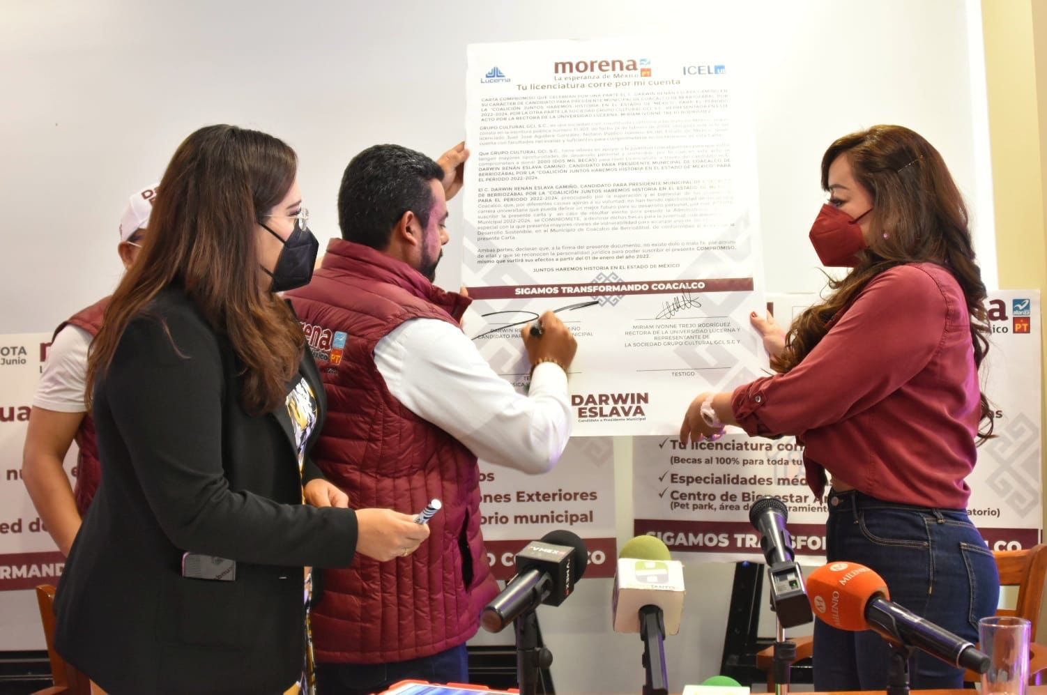En conferencia de prensa, en la que firmó una carta compromiso con Grupo Cultural GCI, Darwin Eslava resaltó que, de concretarse esta acción, Coacalco se colocaría a la vanguardia en este rubro, ya que no se tiene precedente de un programa así que impacte de manera directa en la calidad educativa de las y los jóvenes.