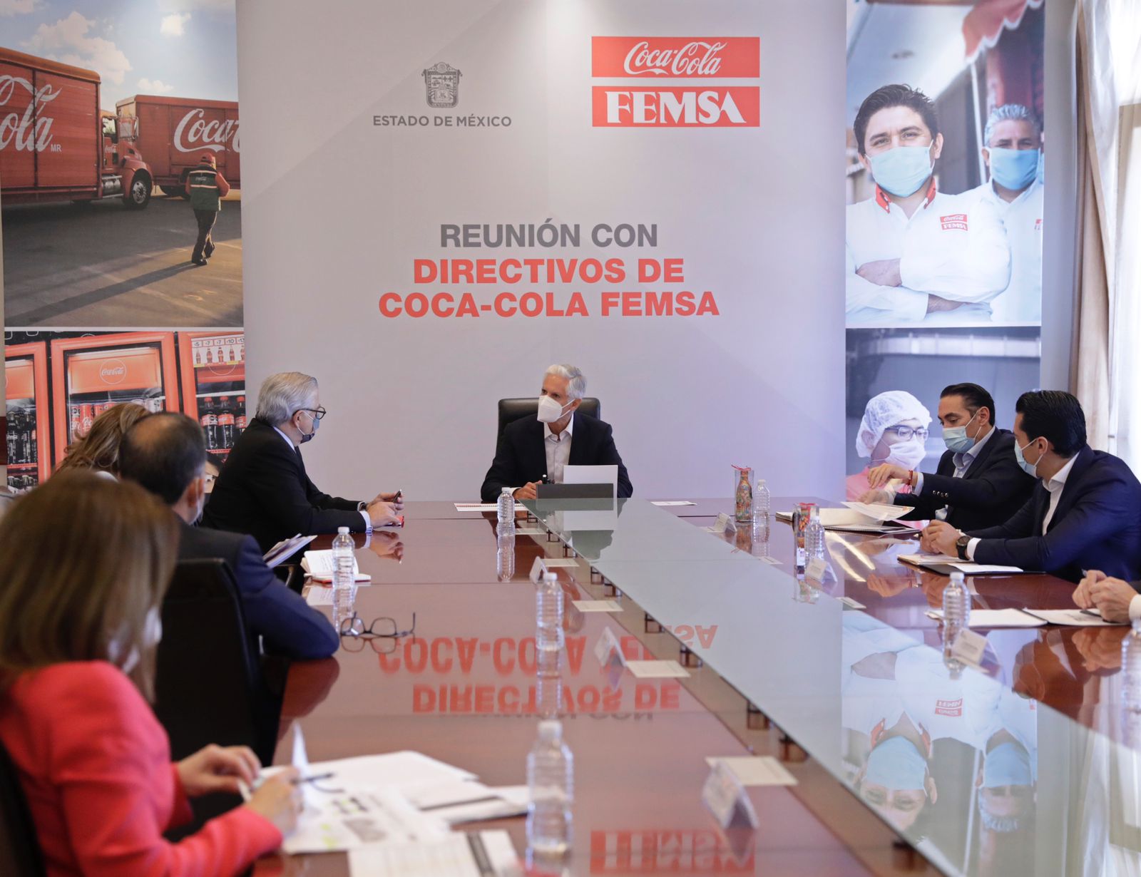 A este encuentro, realizado en el Salón “Guadalupe Victoria” de la sede del Poder Ejecutivo estatal, asistieron el Secretario de Desarrollo Económico del Estado de México, así como los Directivos de Coca-Cola FEMSA, Fabricio Ponce, Director División México, María del Carmen Alanís, Directora de Asuntos Corporativos, Ana Paola Barbosa, Gerente de Asuntos Internacionales, y Luis Darío Ochoa, Director de Asuntos Corporativos División México.