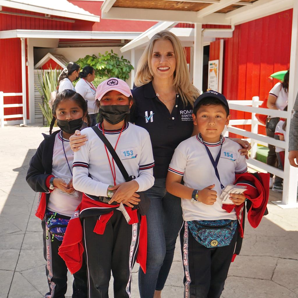 Romina Contreras convivió con los pequeños en el parque temático Granja Las Américas, donde, juntos, disfrutaron de experiencias interactivas de aprendizaje, como talleres como fábrica del ahorro, sala de cine, fruti huerta, panadería, del agua, laberinto de espejos, entre otros; así como disfrutar y conocer a través de la convivencia con diferentes especies de animales, con la finalidad de hacer conciencia sobre la importancia de cuidar todo el entorno en el que viven.