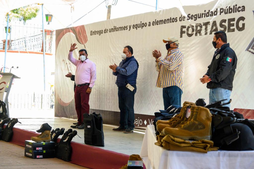 - Se entregaron 600 uniformes completos de la más alta calidad para salvaguardar la integridad física de quienes tienen bajo su responsabilidad la seguridad de la población