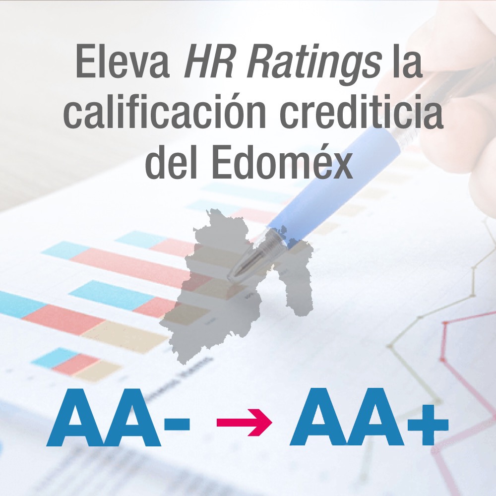 • Informan que, además de HR Ratings, este año Fitch Ratings también elevó la calificación del Edomex al pasar de AA(mex) a AA+(mex) por su probada capacidad de control del gasto operativo.