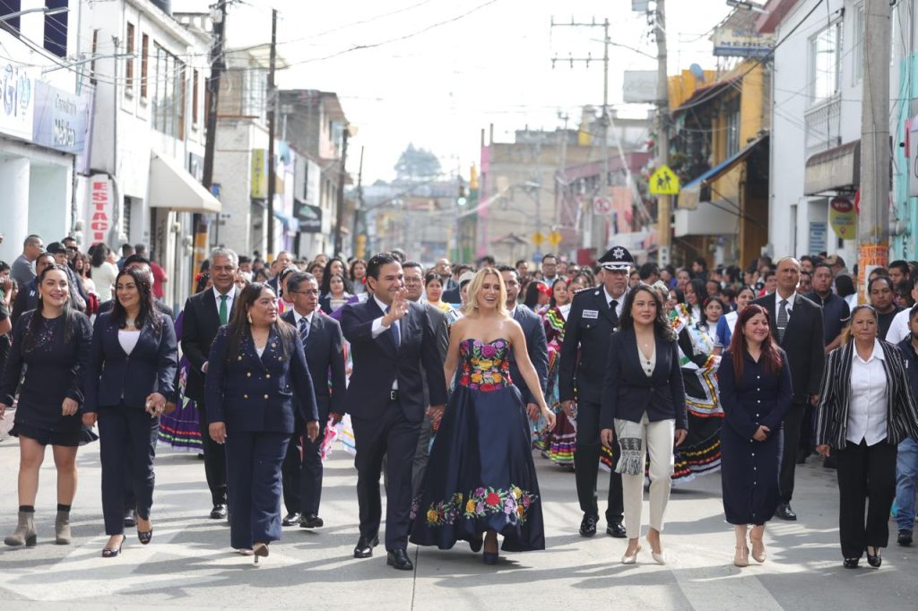 • La presidenta municipal de Huixquilucan, y el vicecoordinador de los senadores del PAN, encabezaron el Desfile Cívico y, junto con servidores públicos, estudiantes, docentes y charros, entre otros participantes, recorrieron las principales calles de la Cabecera Municipal