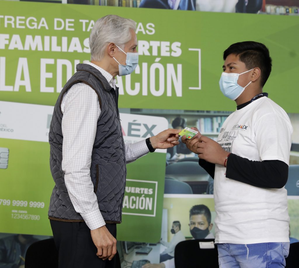 Acompañado por el Secretario de Educación, Gerardo Monroy Serrano, el Gobernador mexiquense recalcó que las becas reconocen el esfuerzo de las y los alumnos, así como de sus familias, en especial a aquellas que tienen a un integrante con discapacidad en edad escolar, ya que requieren un mayor esfuerzo para tomar sus clases e implica gastos para cubrir transporte, adquirir material escolar u otros, y puntualizó que el apoyo monetario que recibirán los jóvenes becados, se otorgará mensualmente.