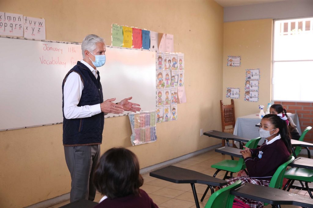 «Hemos tenido un incremento de contagios, ha avanzado rápidamente el incremento de contagios, pero afortunadamente estos contagios no terminan en hospitalizaciones o en casos graves, la mayoría de los casos, han sido casos que con unos días de guardarse en casa, con cuidarse, han podido salir adelante, pero aun así, debemos de seguir cuidándonos como lo hacen hoy en día aquí en la escuela, con las medidas preventivas, las medidas sanitarias, para evitar que siga creciendo este ritmo de contagios hacia adelante», sostuvo.
