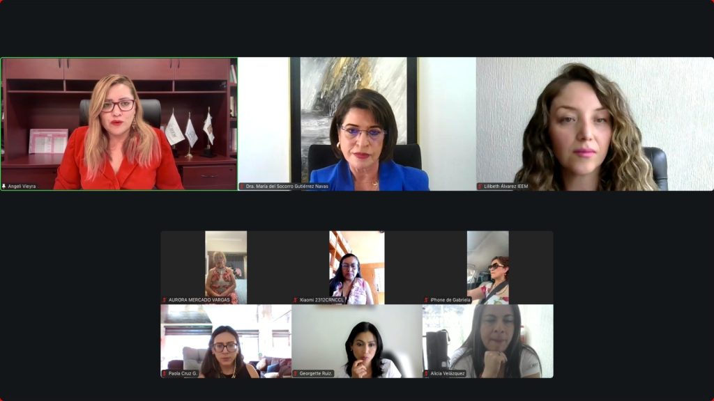 En este espacio participaron en representación de la Organización Mundial de Abogadas, la Presidenta, Aurora Mercado Vargas; por el Instituto de Investigaciones Jurídicas, de Capacitación y Certificación Profesional de la OMA, la Rectora Gabriela Valenzuela Guerrero y la Secretaria Académica de la OMA, María del Socorro Gutiérrez Navas, y de la Asociación de Abogados y Juristas Mexiquenses A.C. la Presidenta, Rosa María Retama Ruíz. En representación del IEEM estuvo presente la Jefa de la UT Lilibeth Álvarez Rodríguez.