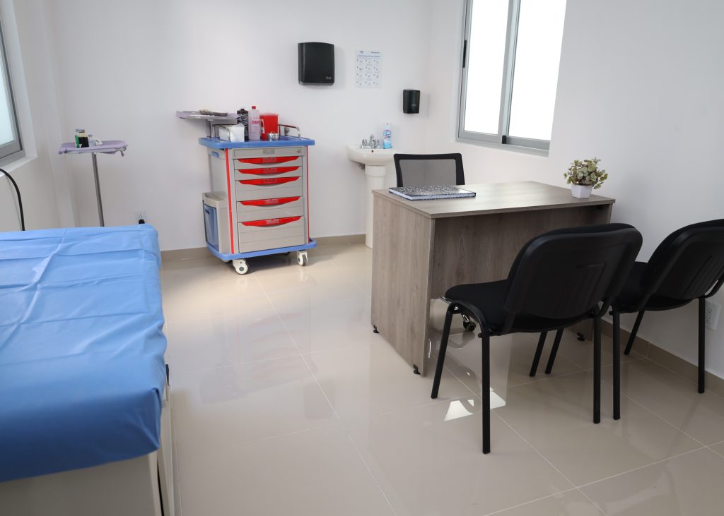 Además, cuenta con servicios como toma de muestras, signos vitales, sanitarios, archivo clínico, cuarto de aseo, enfermería, almacén general, cuarto de aseo, lavandería y sala de usos múltiples, entre otros.