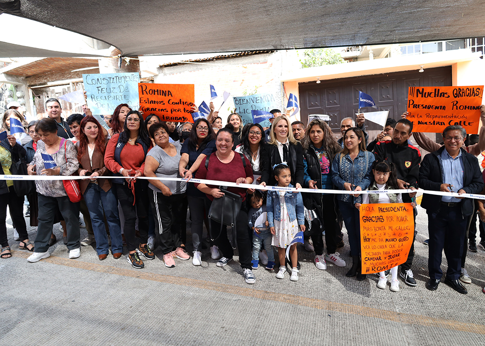 · La presidenta municipal, Romina Contreras, entregó la repavimentación con concreto hidráulico de 5 calles de las localidades de Ampliación Palo Solo, Constituyentes de 1917, Magdalena Chichicaspa, Tierra y Libertad, y el Segundo y Tercer Cuartel de los Barrios de San Miguel y Santiago