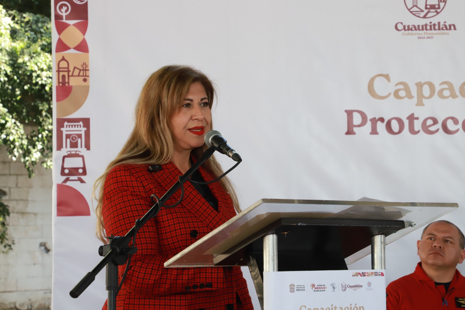 La presidenta municipal de Cuautitlán, Juanita Carrillo Luna, reafirmó el compromiso de su administración con la protección civil al inaugurar el curso teórico-práctico “Medidas Integrales de Seguridad en Evacuación Aeromédica” (MISEA), impartido por el Grupo Relámpagos. Durante su intervención, destacó la importancia de equipar y capacitar a los cuerpos de emergencia: