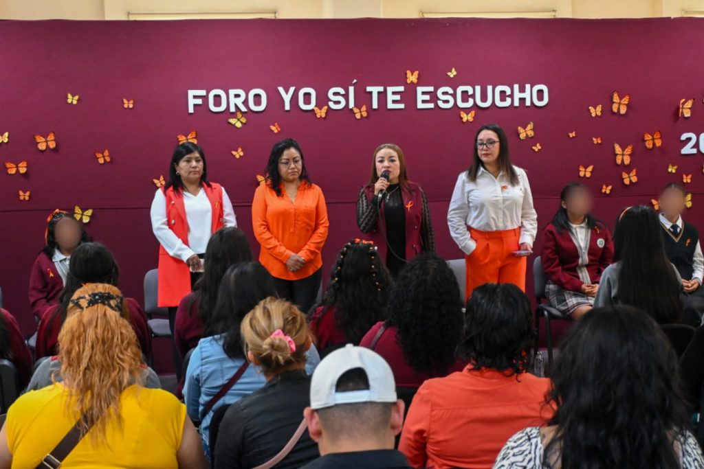 Previamente, en el Salón Bicentenario de Palacio Municipal, durante el foro “Yo sí te Escucho” se abordó el tema de “Violencia en el Noviazgo”, donde estudiantes de las secundarias Rosario Castellanos 166 y Vicente Guerrero 66, así como la Telesecundaria Nicolás Romero, dialogaron y reflexionaron sobre este problema que puede presentarse de forma física, psicológica, sexual, digital y económica.