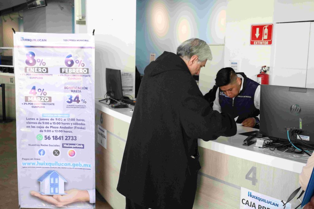 Asimismo, para facilitar a los contribuyentes el pago del impuesto predial, el Gobierno de Huixquilucan habilitará cajas móviles, las cuales se instalarán en diversos puntos, por lo que se pide a la población estar al pendiente de las páginas oficiales del Ayuntamiento para conocer las fechas y ubicaciones.