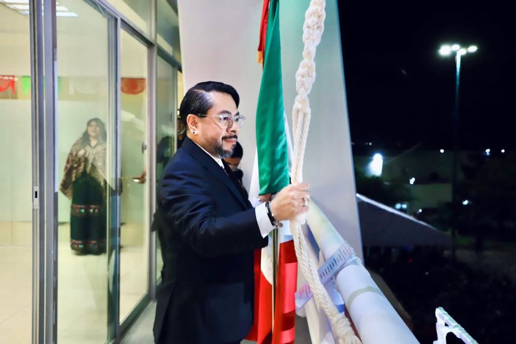 viva México!, exclamó el alcalde Daniel Serrano, para después ondear la