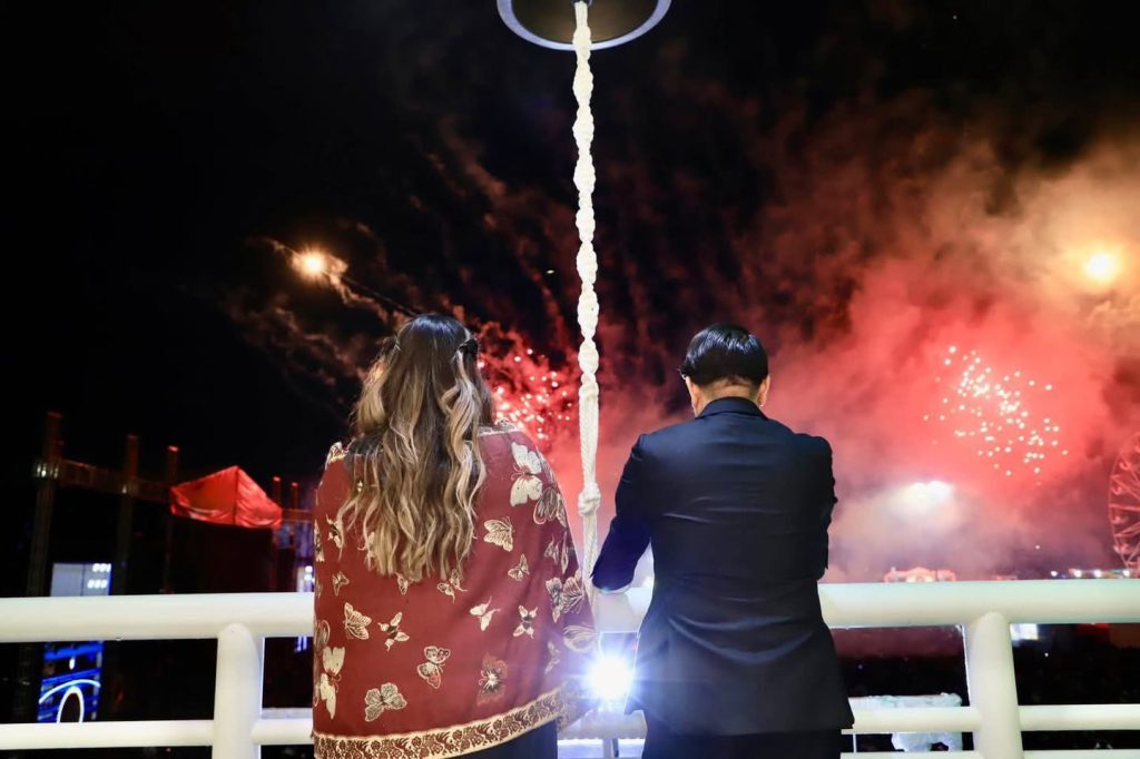 La explanada municipal se iluminó con un espectáculo piromusical, mismo
