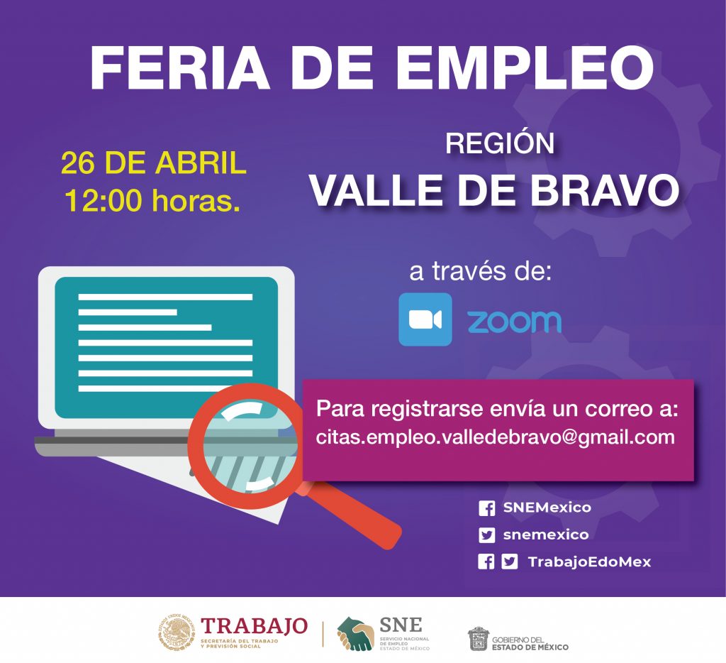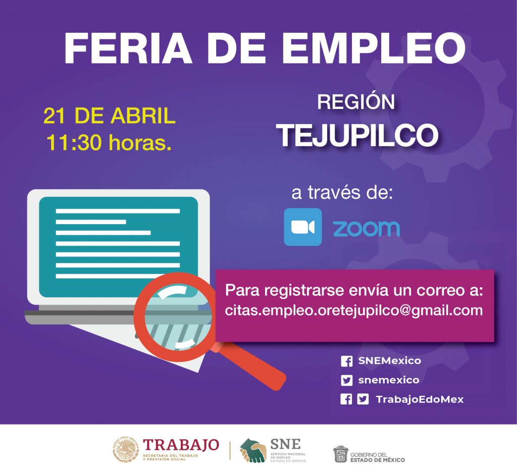 Para la Región Valle de Bravo citas.empleo.valledebravo@gmail.com, citasecatepec@gmail.com, para Ecatepec, oficinaregionalneza@yahoo.com.mx, para Nezahualcóyotl y orenaucalpan@gmail.com, para Naucalpan.