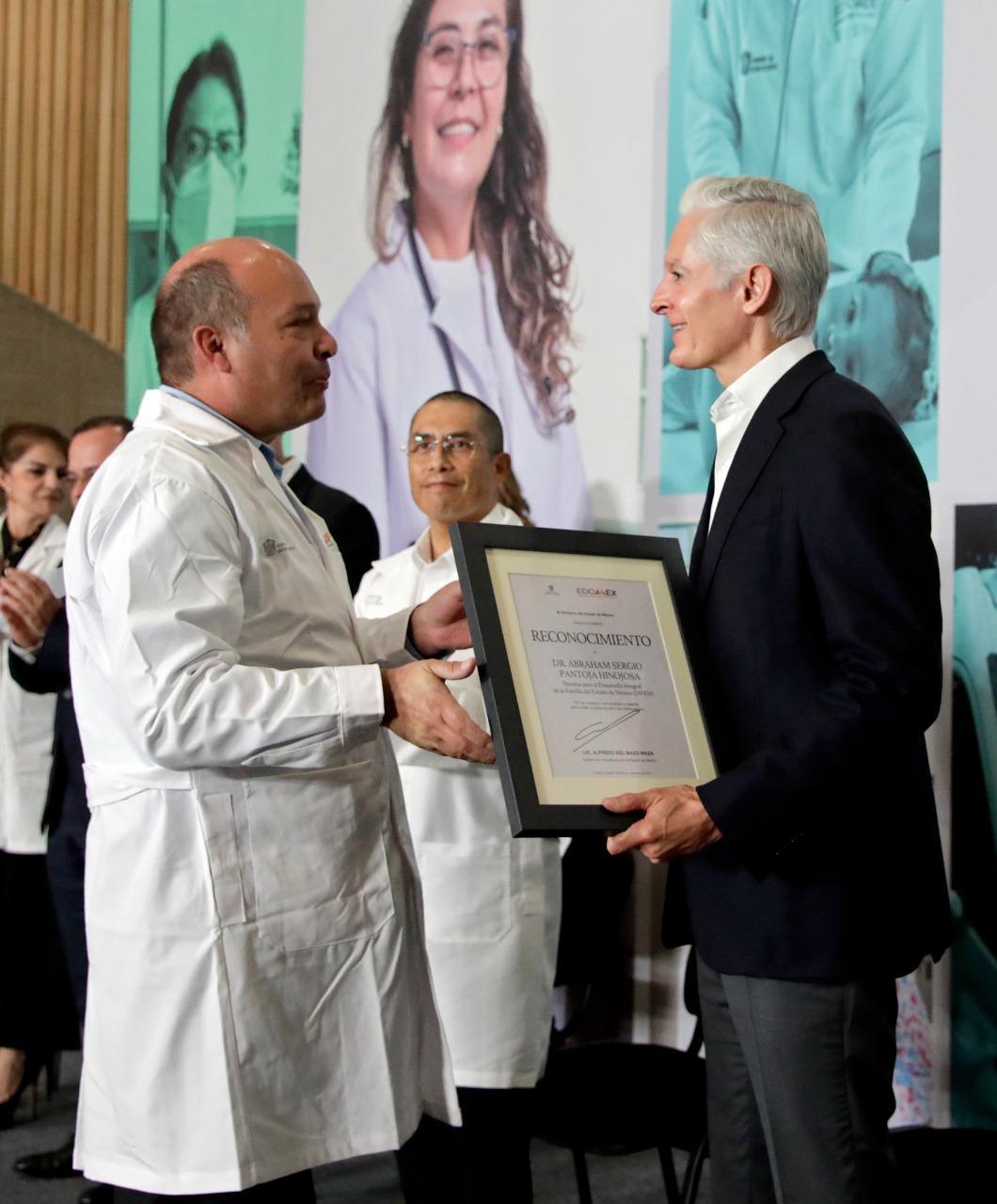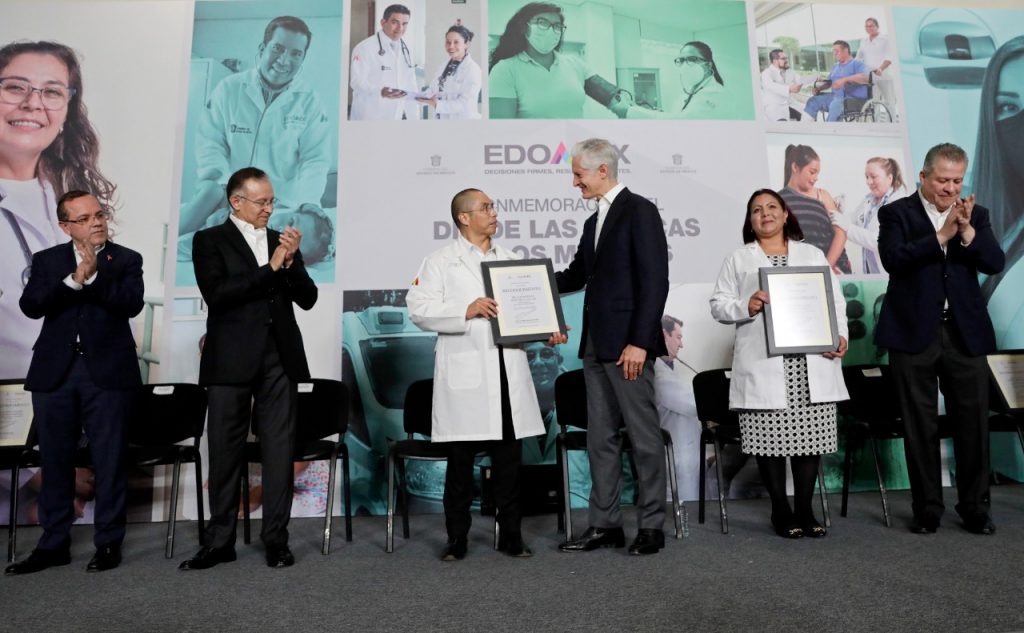 En esta ceremonia, el mandatario estatal, junto con el Secretario de Salud, Francisco Fernández Clamont, entregó reconocimientos a profesionales de la salud de instituciones como el ISSEMyM, el Instituto Materno Infantil (IMIEM), el DIFEM, la Cruz Roja, el Instituto de Seguridad y Servicios Sociales de los Trabajadores del Estado (ISSSTE), el Instituto Mexicano del Seguro Social (IMSS) y el Instituto de Salud del Estado de México (ISEM).