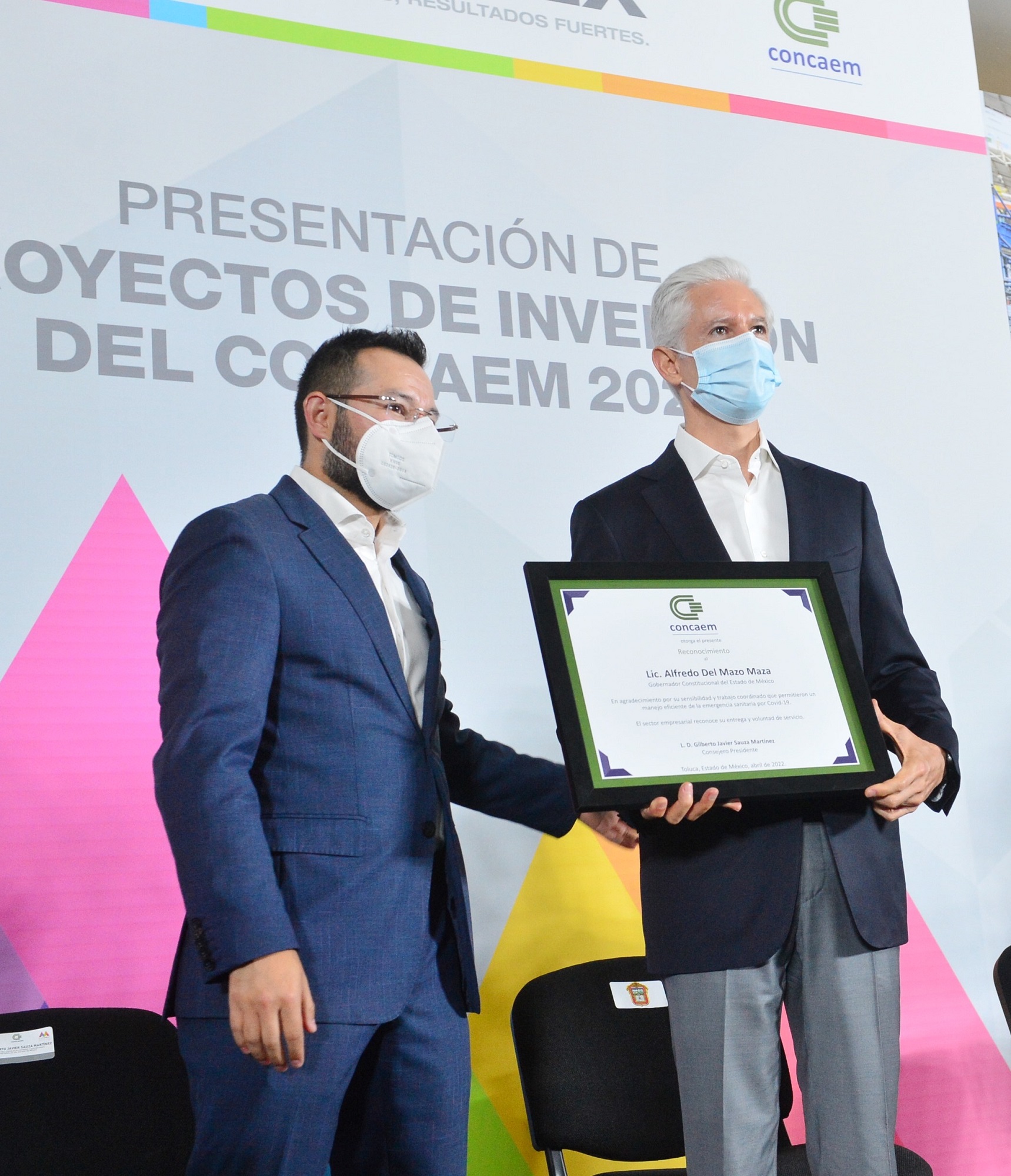 Durante este acto, el Presidente del Concaem, Gilberto Sauza Martínez, entregó un reconocimiento al Gobernador Del Mazo, por su sensibilidad y compromiso con el desarrollo económico de la entidad durante la época de la pandemia, donde las empresas asentadas en la entidad y los trabajadores fueron respaldados por el Gobierno estatal, mediante diversas estrategias y programas de apoyo.