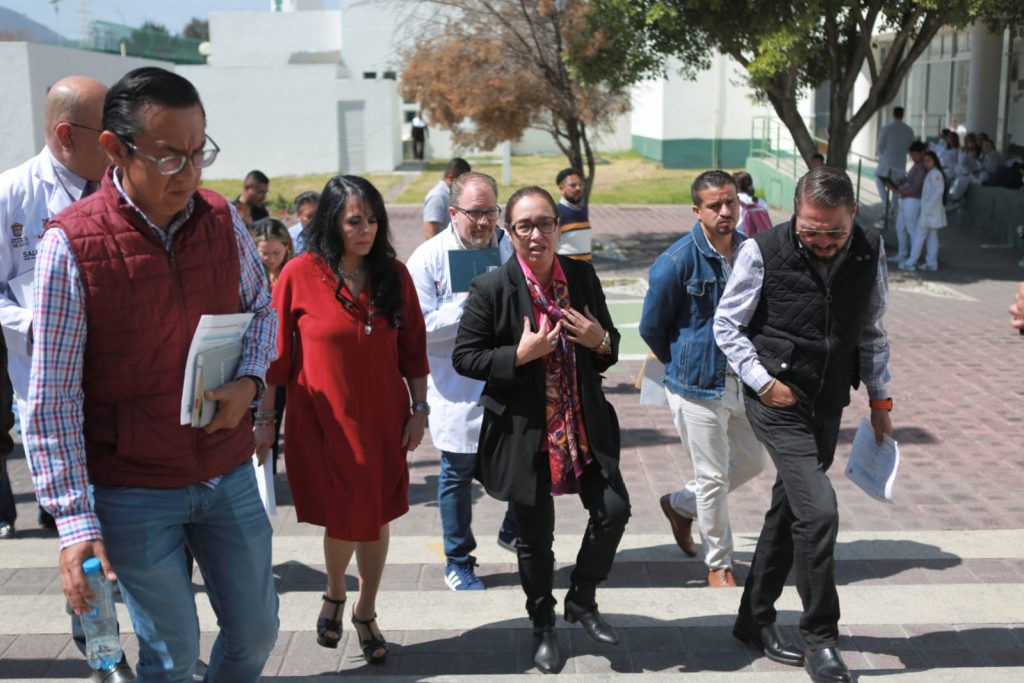 La presidenta municipal acudió al Hospital Las Américas donde sostuvo una primera reunión de organización y realizó un recorrido por las instalaciones junto a Felipe Cruz Vega, coordinador de Proyectos Especiales nivel central IMSS; Priscila Cruz Flores, coordinadora de Jornadas de Oftalmología de la coordinación de proyectos especiales; Guadalupe Guerrero Avendaño, coordinadora estatal del IMSS-Bienestar; Herman Gorg Lechuga, subdirector médico del Hospital y Godwin González Estrada, responsable de Atención Medica en Edomex del IMSS-Bienestar.