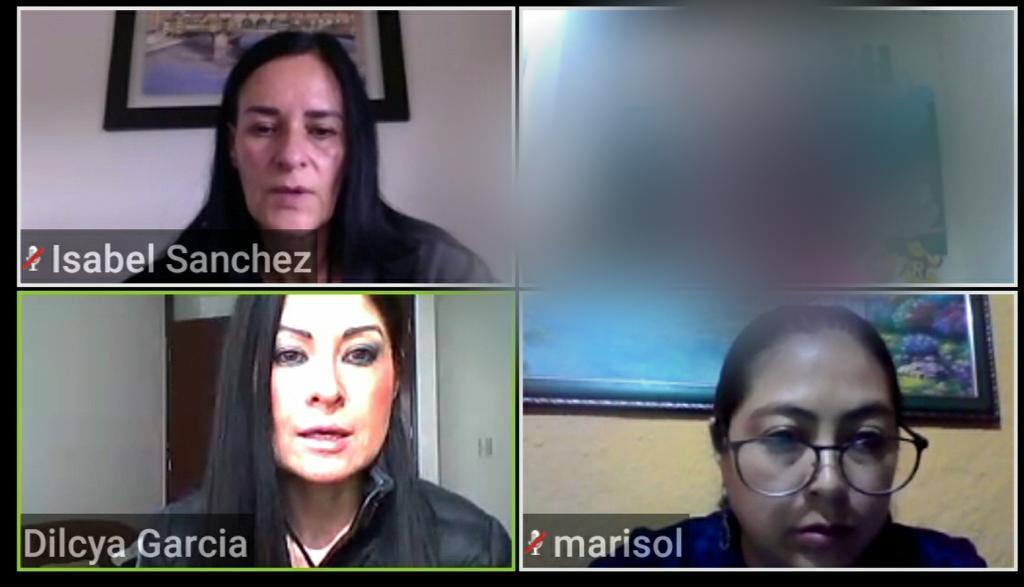 Al reunirse con las víctimas, a través de una plataforma digital, la titular de la Secretaría de la Mujer, María Isabel Sánchez Holguín, refrendó el respaldo del Gobernador Alfredo Del Mazo con las mujeres y la libertad a manifestarse, al tiempo que les ofreció el acompañamiento de la dependencia para realizar sus denuncias y de personal en las siguientes manifestaciones, a fin de evitar actos violentos.