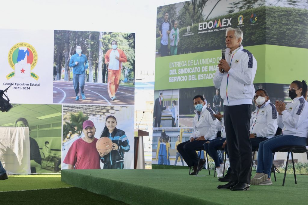 “Todo lo que hagamos para fortalecer a quienes hacen posible esta educación es en beneficio de los niños, de los jóvenes y de las familias mexiquenses, por eso les reitero el compromiso del Gobierno del Estado de seguir impulsando, de seguir apoyando infraestructura como ésta, que además de propiciar el deporte, también nos permita retomar las competencias del magisterio, los eventos culturales y deportivos del SMSEM”, subrayó.