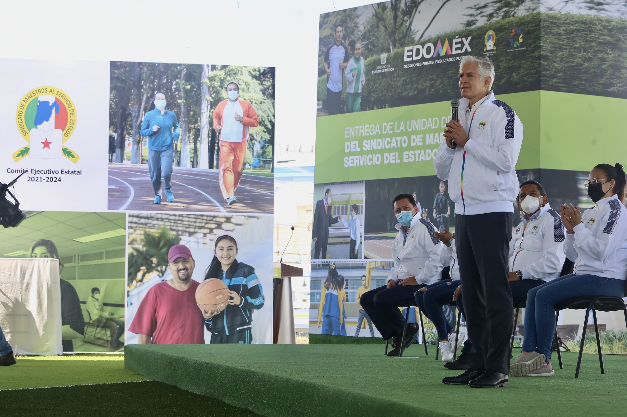 Durante la entrega de la Unidad Deportiva del Sindicato de Maestros al Servicio del Estado de México (SMSEM), Del Mazo Maza sostuvo que es necesario recuperar el tiempo que se perdió por la contingencia sanitaria, por lo cual se cuenta con el magisterio mexiquense, para impulsar la formación de los jóvenes y niños.