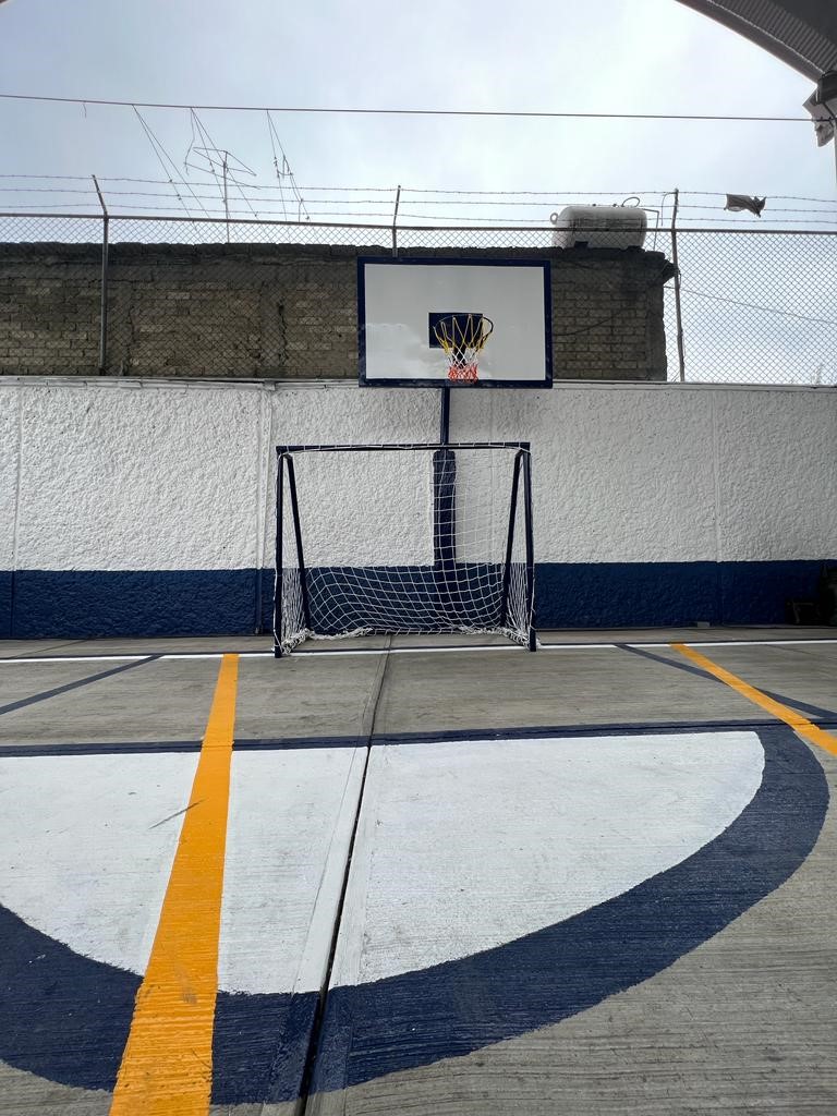 · Entre las acciones que se llevaron a cabo, destacan la pinta de exteriores de las aulas, así como entradas y salidas principales, rehabilitación de tableros de basquetbol y trazado de canchas deportivas