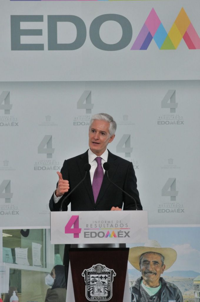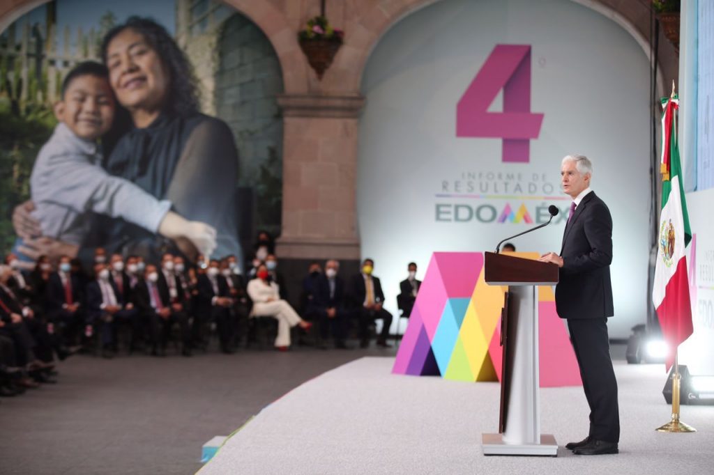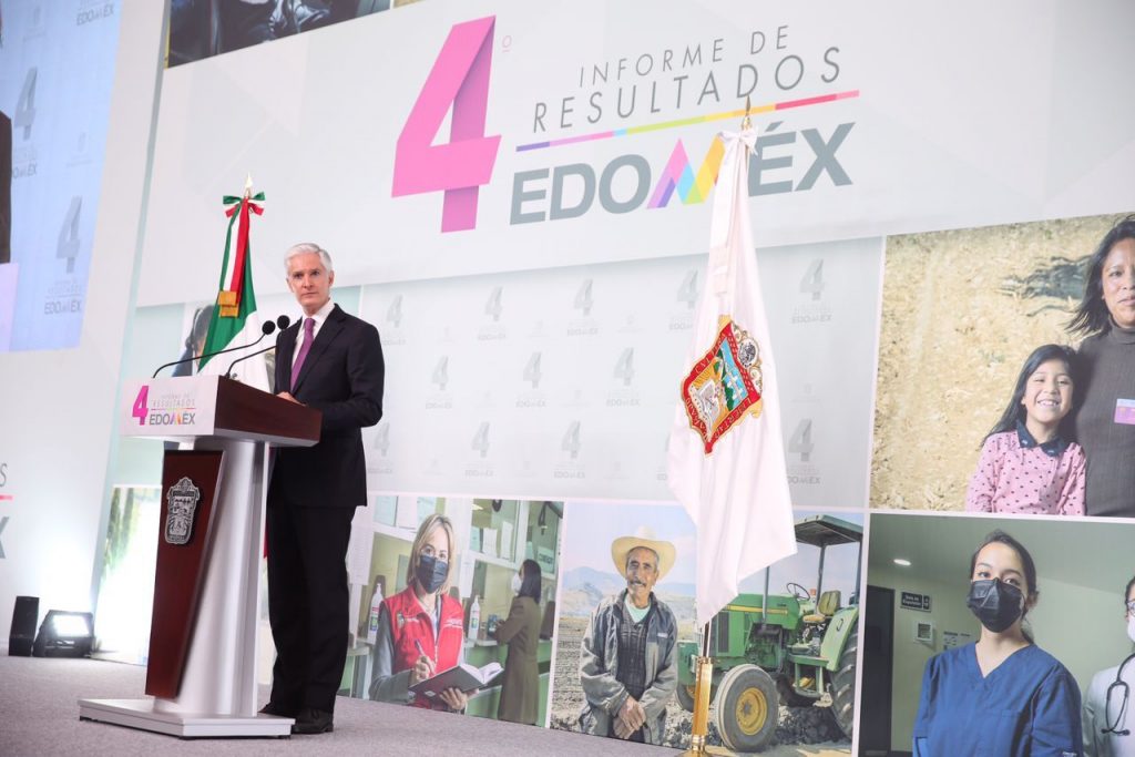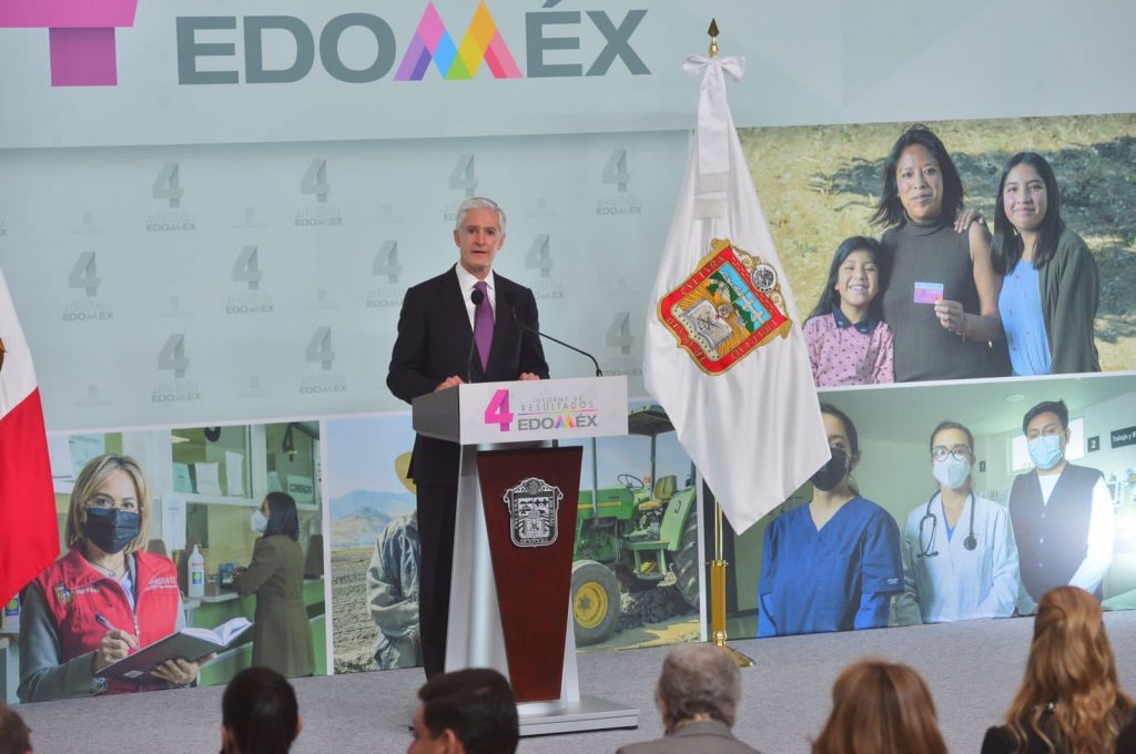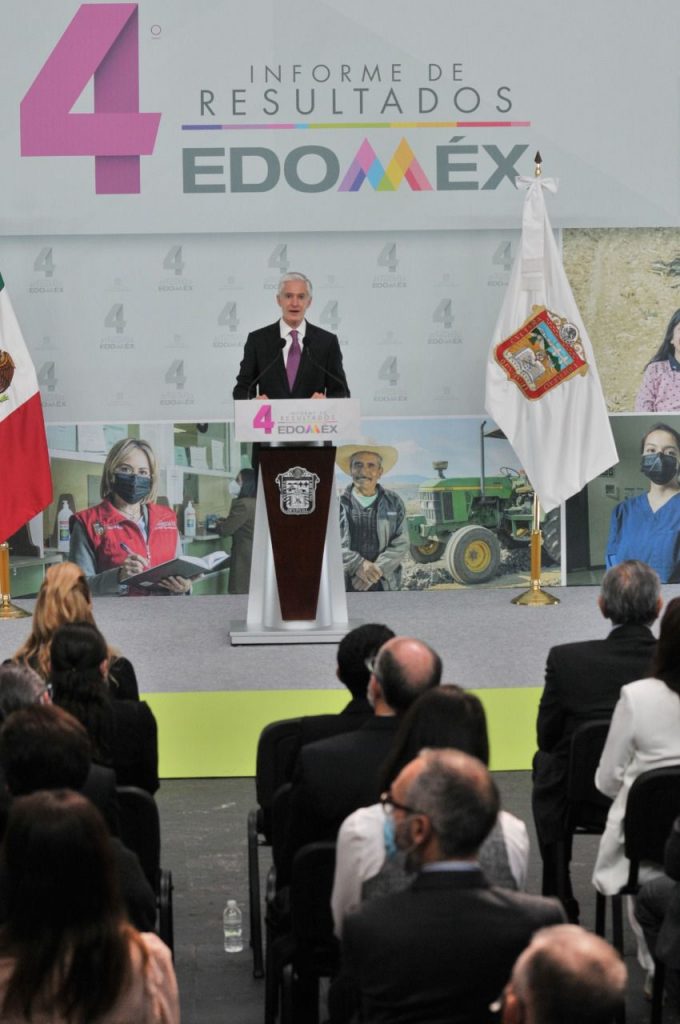 En su Cuarto Informe de Resultados, que también atestiguaron Adán Augusto López Hernández, Secretario de Gobernación, Olga Sánchez Cordero, Presidenta de la Mesa Directiva del Senado de la República, Claudia Sheinbaum Pardo, Jefa de Gobierno de la Ciudad de México, Ingrid Schemelensky Castro, Presidenta de la Mesa Directiva para el Primer Periodo Ordinario de la LXI Legislatura, Ricardo Sodi Cuellar, Presidente del Tribunal Superior de Justicia, Maurilio Hernández González, Presidente de la Junta de Coordinación Política de la LXI Legislatura y gobernadores de diversas entidades del país, Del Mazo Maza apuntó que, una vez superados los efectos iniciales de la pandemia, el mundo empieza a recuperar su dinamismo económico, y que el Estado de México se prepara para competir en el nuevo entorno económico global, consolidándose como el mayor centro logístico del país, atrayendo inversiones nacionales y extranjeras.